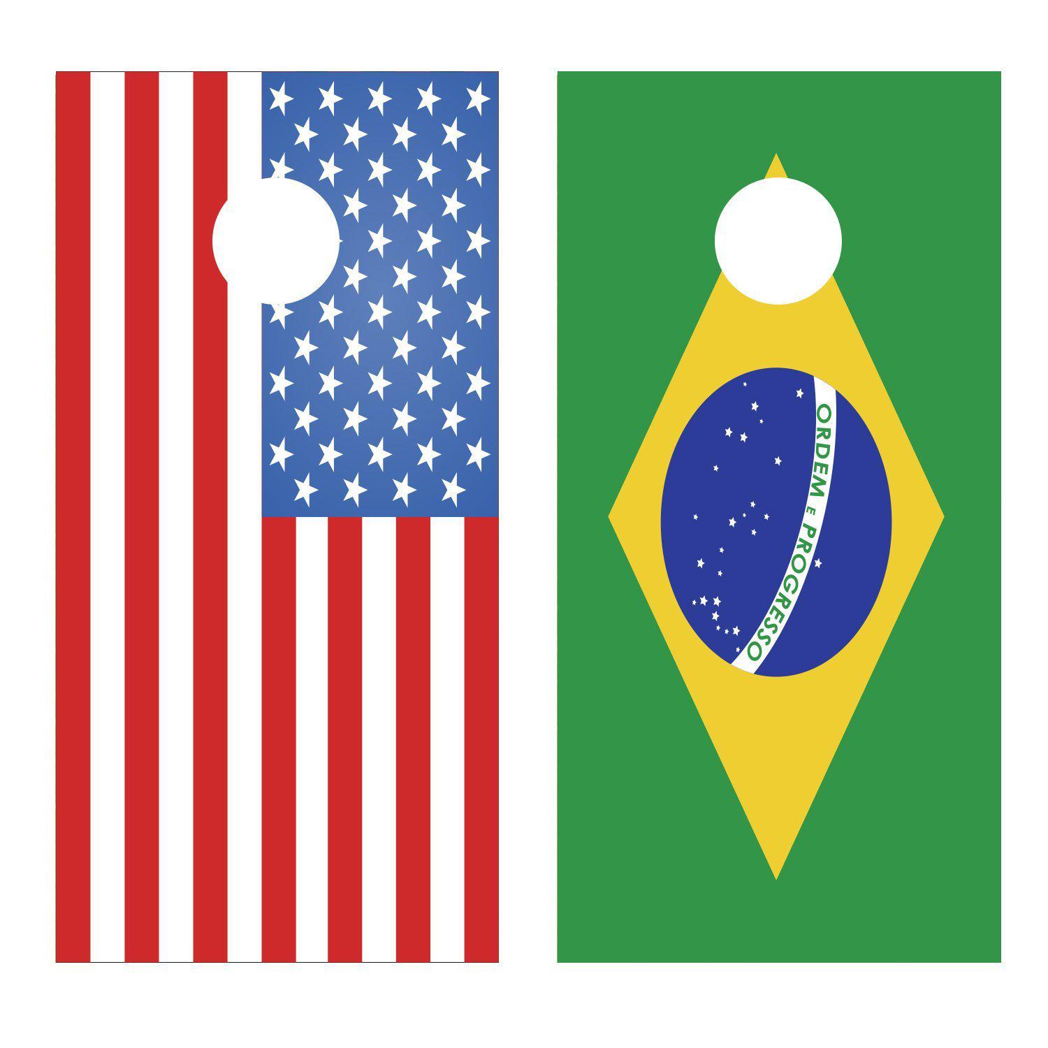 American Flag Brazilian Flag Combo Cornhole Board Decal Wraps