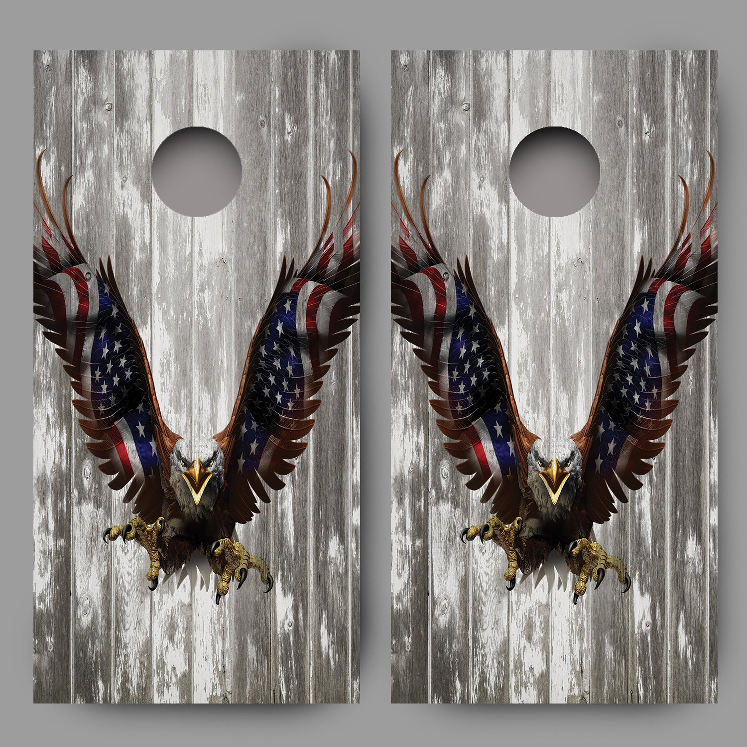 Bald Eagle American Flag on Wood Grain Cornhole Decal Wraps