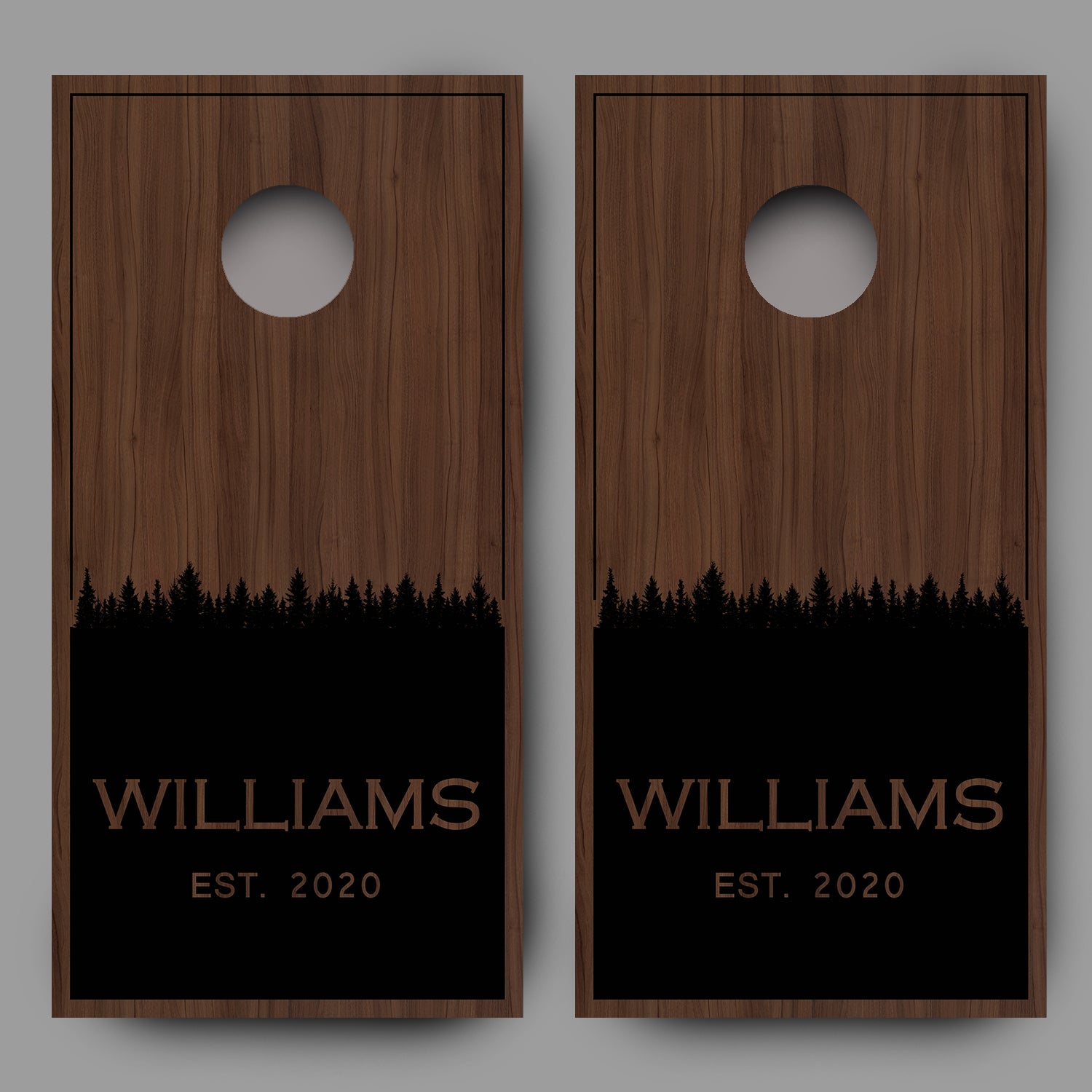 Custom Name with Trees on Wood Black Cornhole Board Decal Wraps