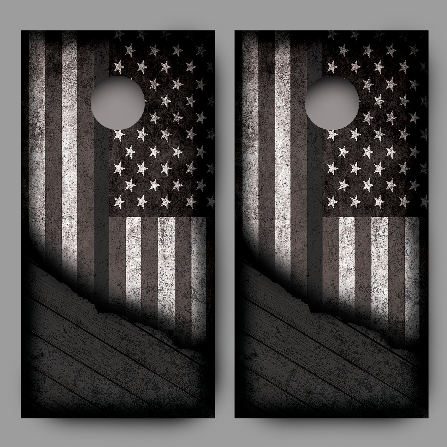Distressed American Flag with Gray Line Corn Hole Wrap