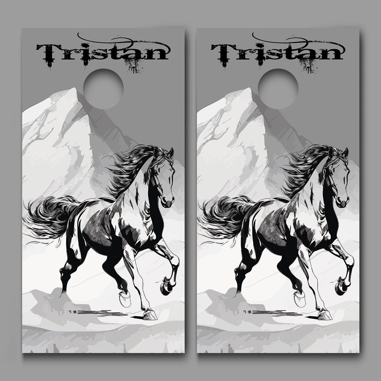 Horse Running Mountains Abstract design Customized With Your Last Name Corn Hole Wrap