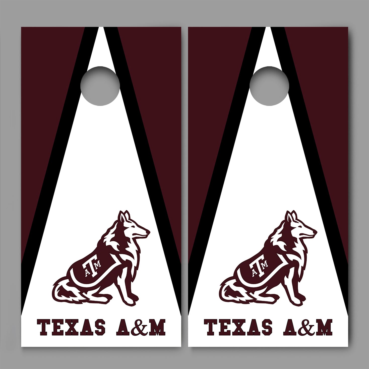 Texas A & M White Dog Triangle Design 02 Corn hole Board Decal Wrap