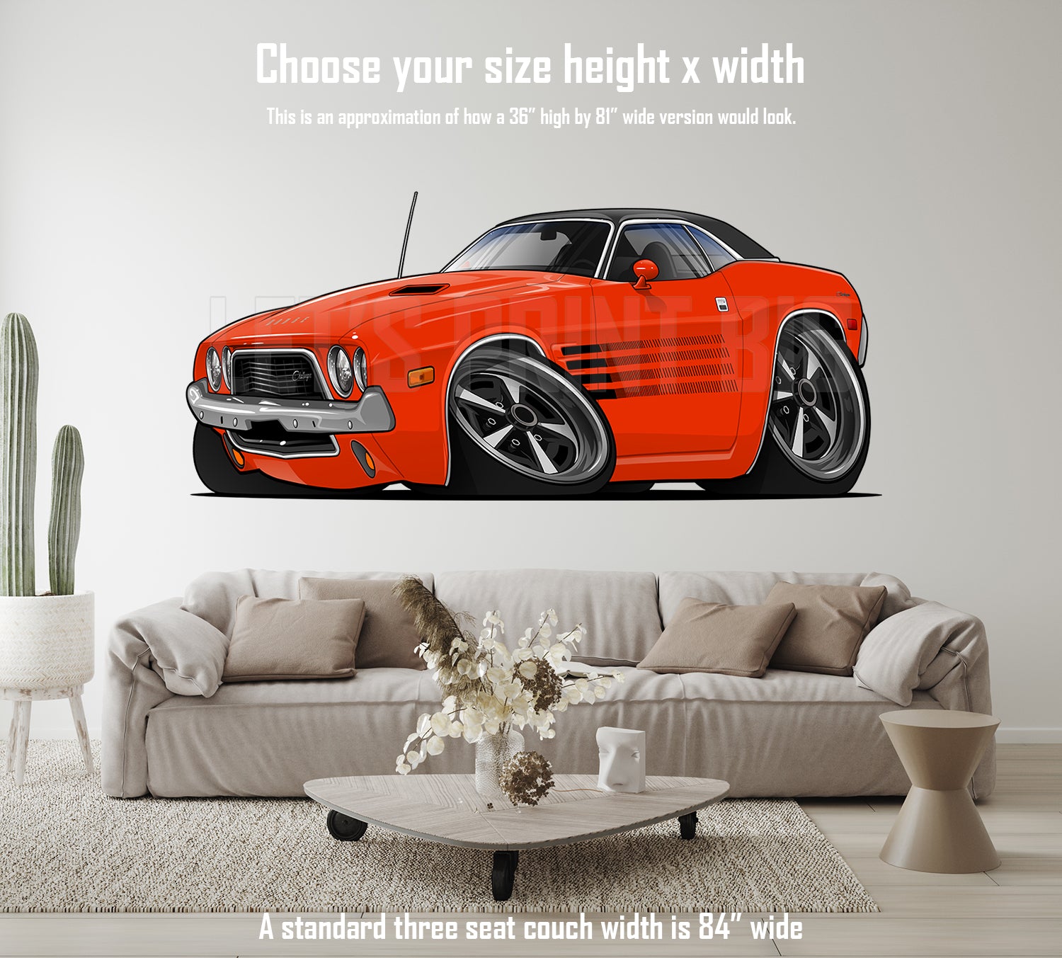 1972 Dodger Challenger Cartoon Car Art Wall Decal
