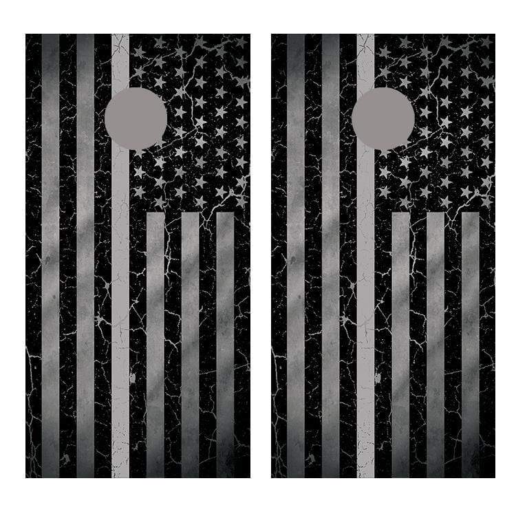 Gray Line Crackle American Flag Corn hole Decal Wrap