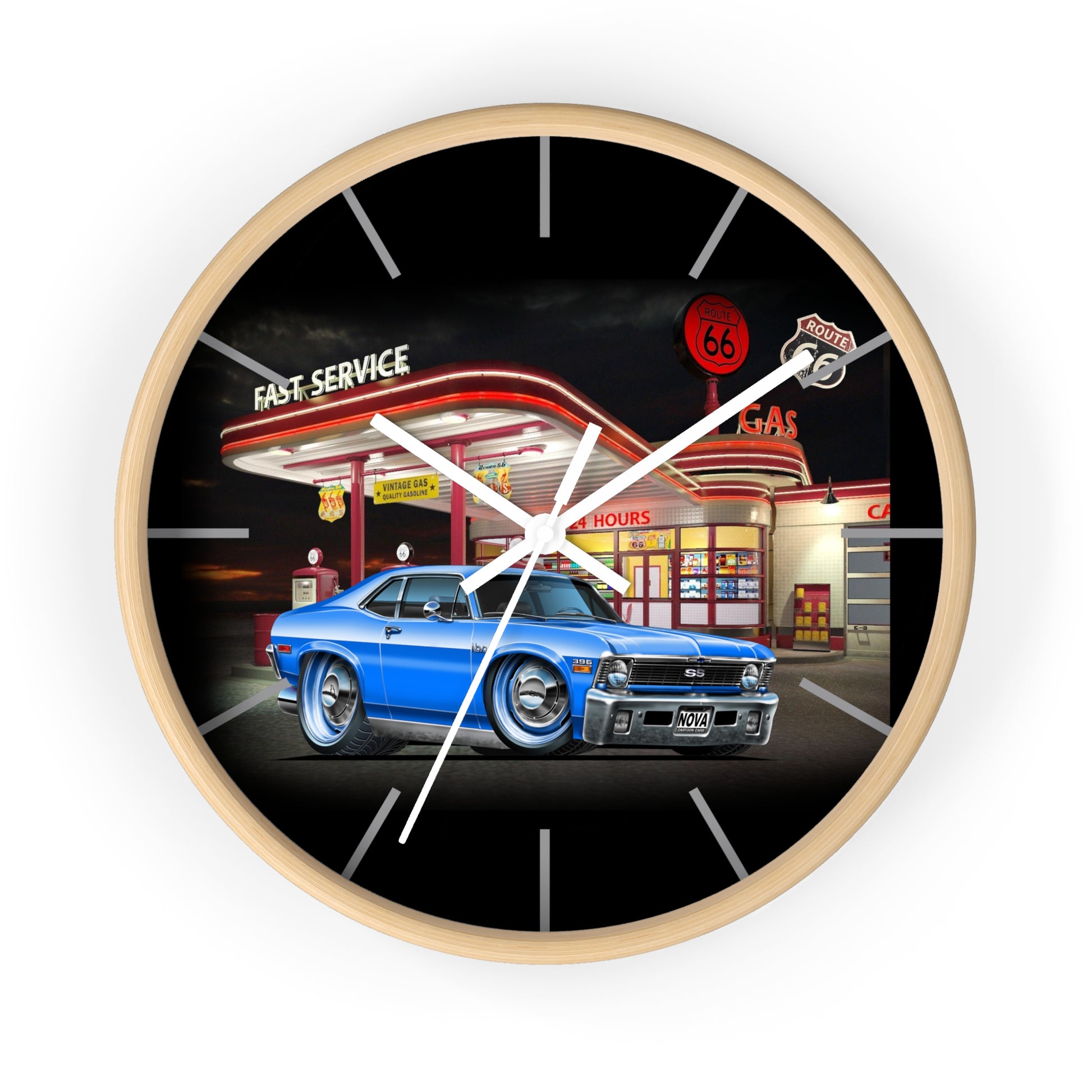 1971 Nova Classic Muscle Car Wall Clock — Blue at Retro Gas Station