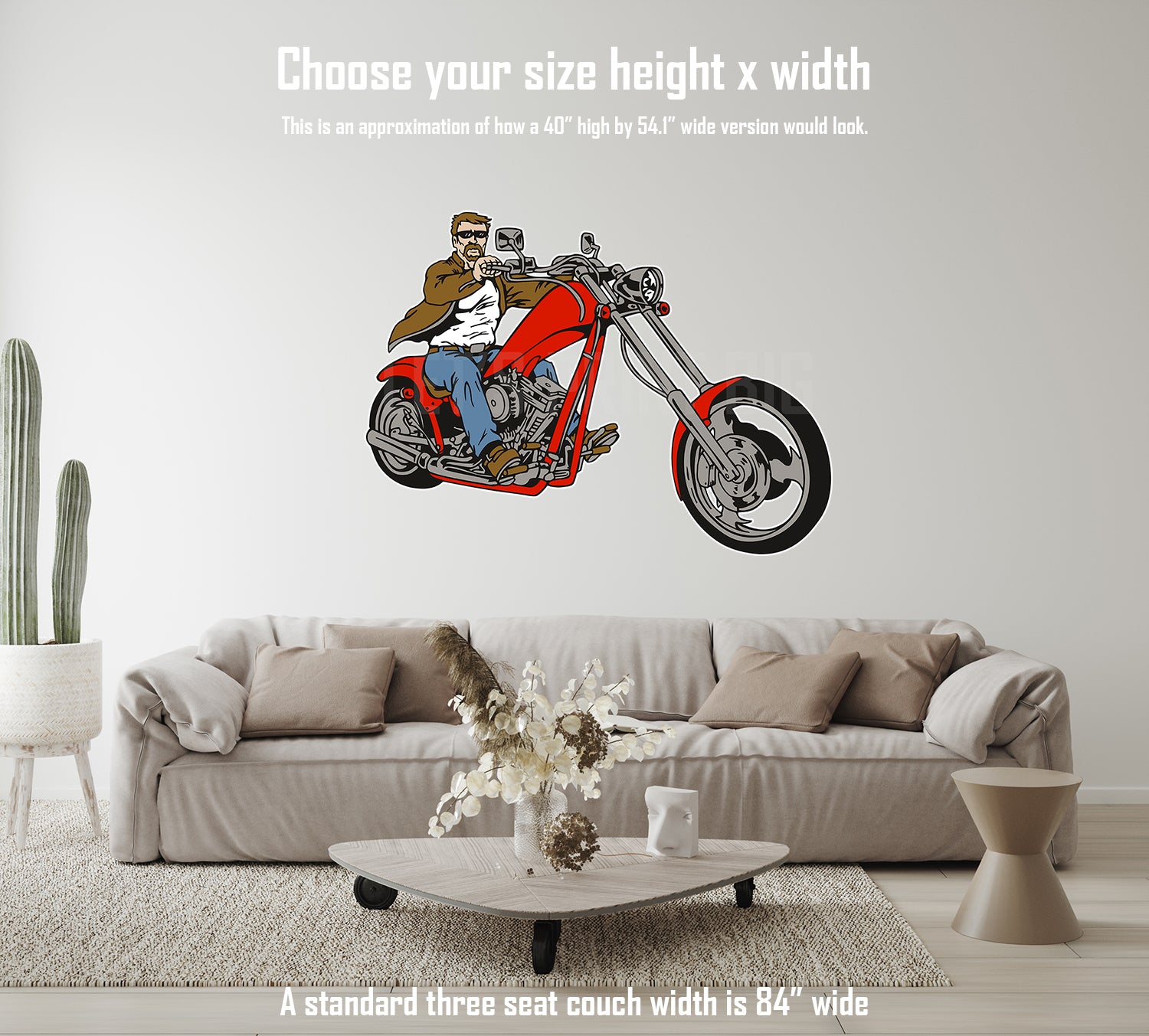 Red Chopper Motorcycle Rider Wall Art Decal Sticker Colored Design