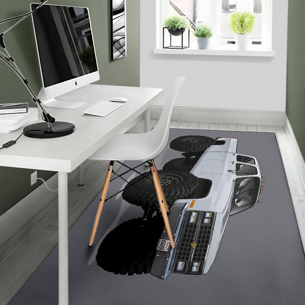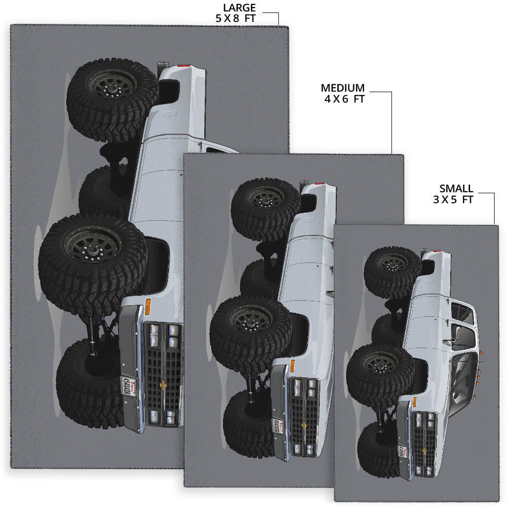 White 4x4 Crew Cab Pickup Truck Car Art Area Rug