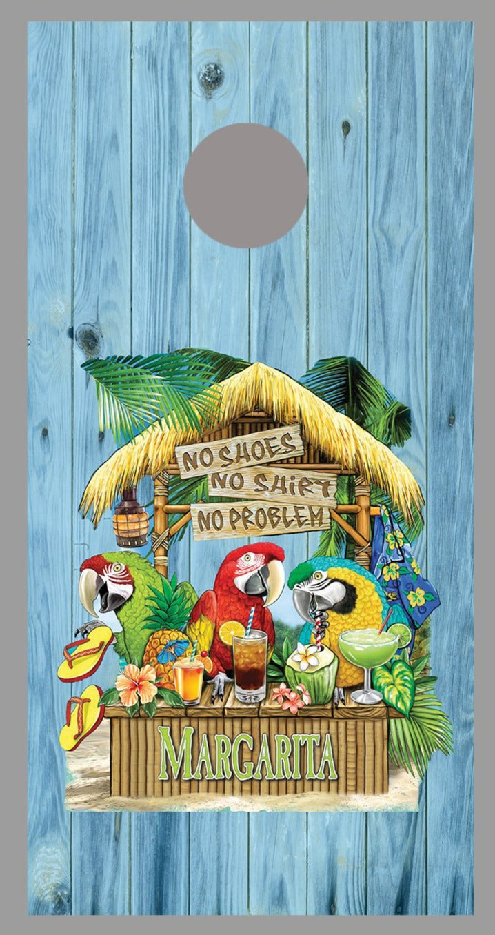No Shoes No Shirt No Problem Wood Cornhole Decal Wrap