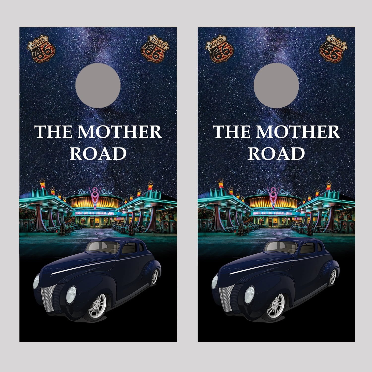 Flo's Café Coupe Hot Rod Cornhole Board Decal Wraps