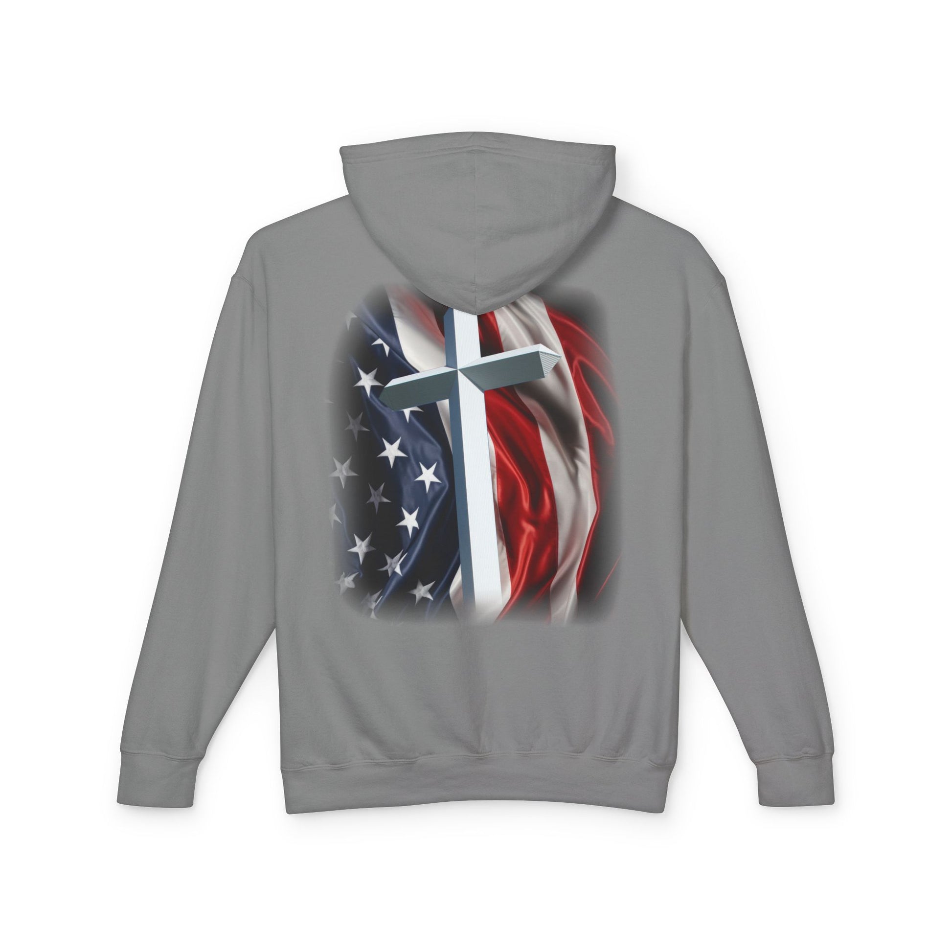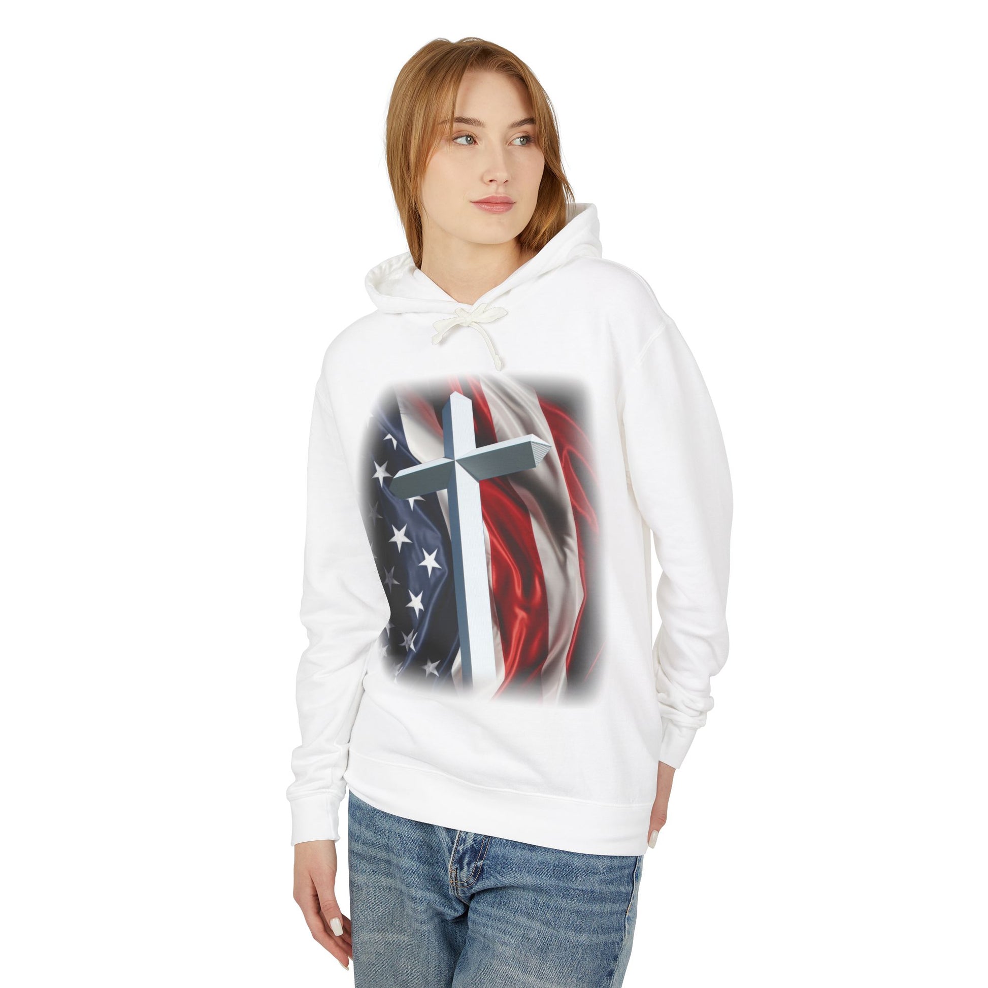 Christian Cross & American Flag Hoodie - Patriotic Faith Sweatshirt