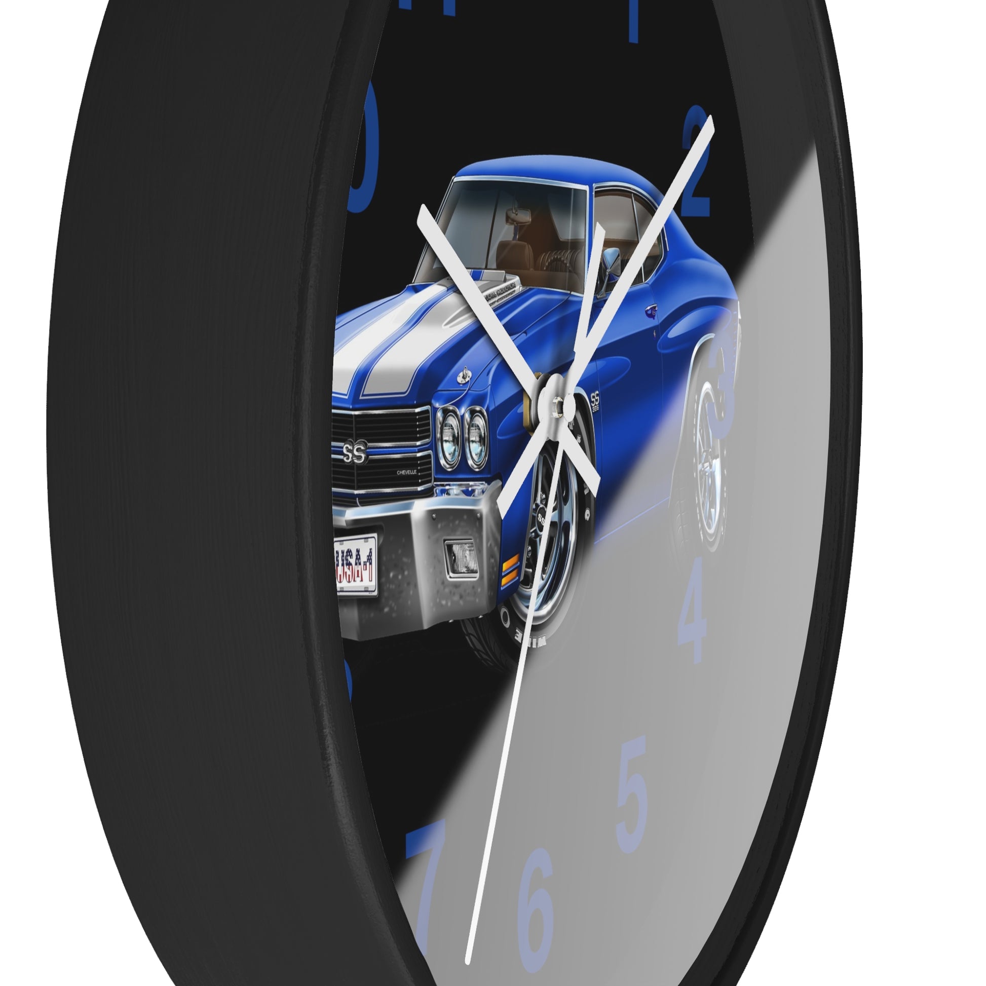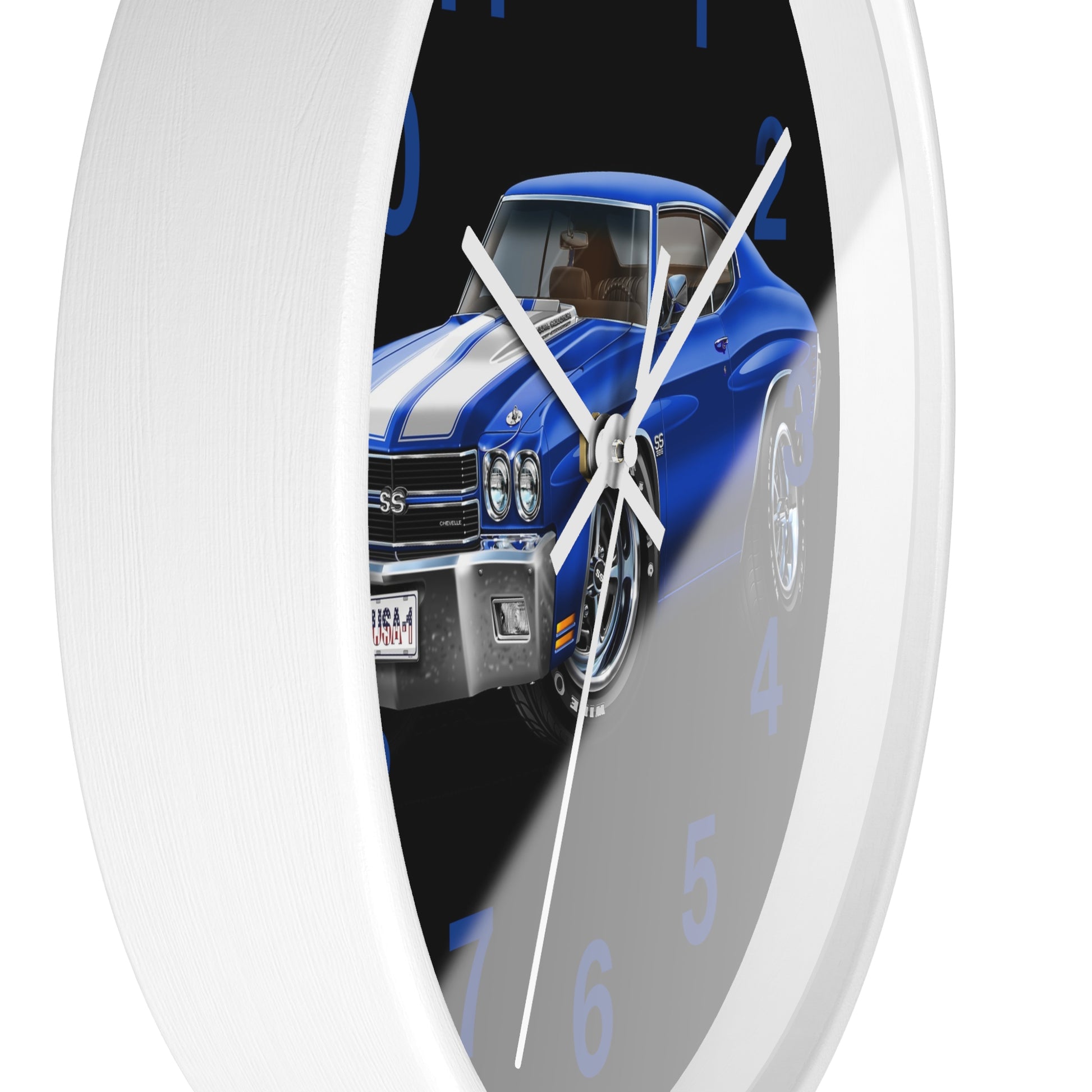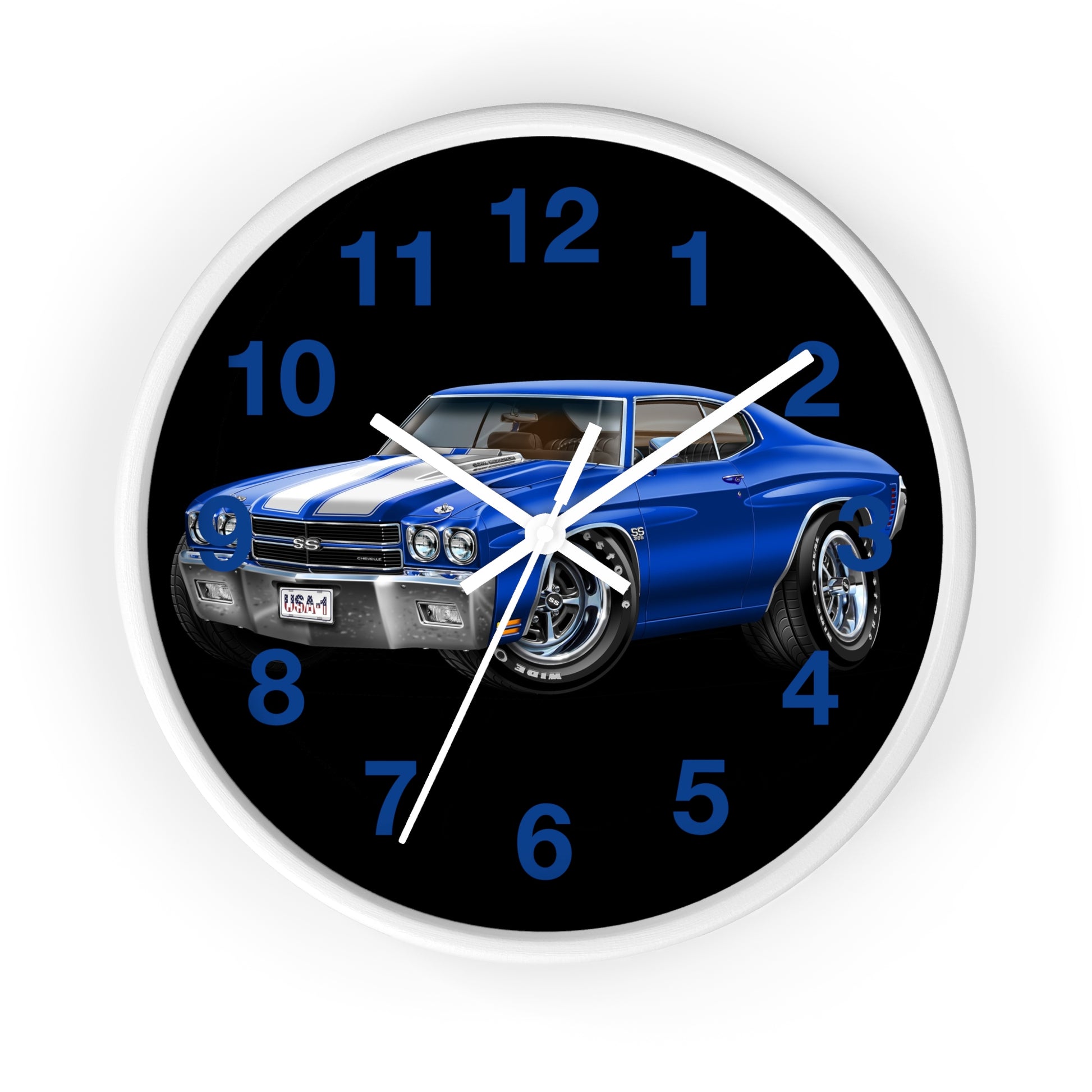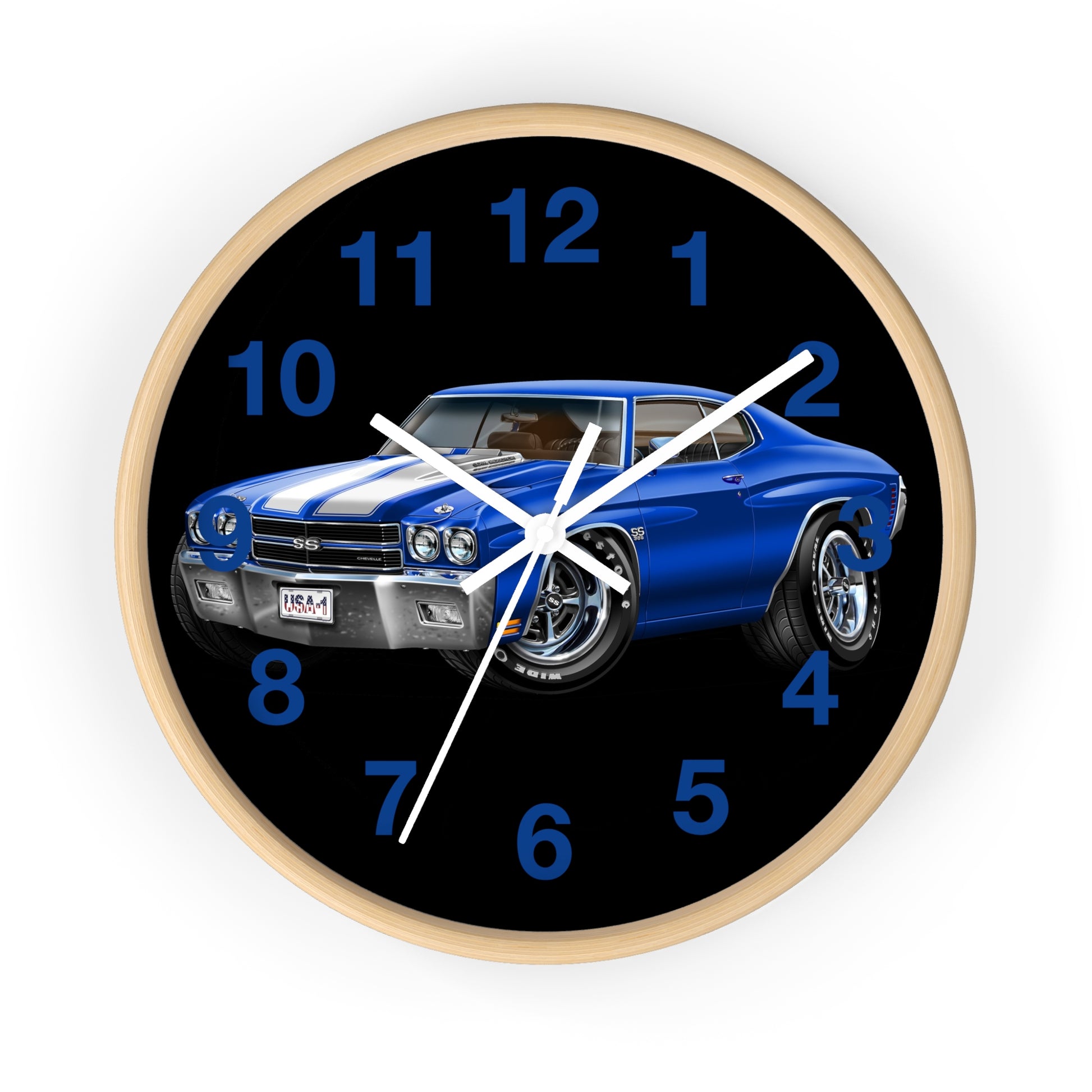 Classic 1970 Blue Chevelle Muscle Car Wall Clock — Vintage 1970s Chevy SS Design