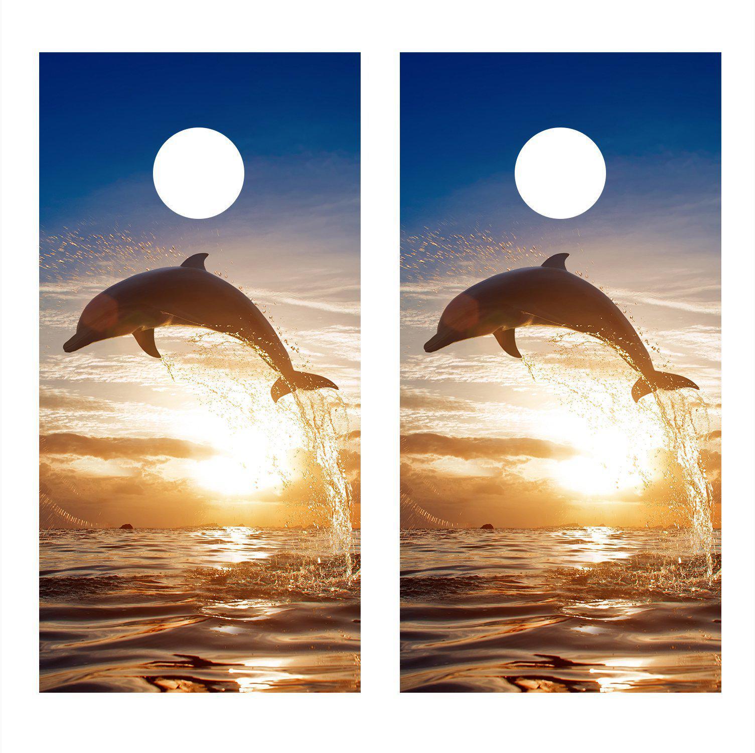 Dolphin Jump Sunset Ocean Corn Hole Board Decal Wrap