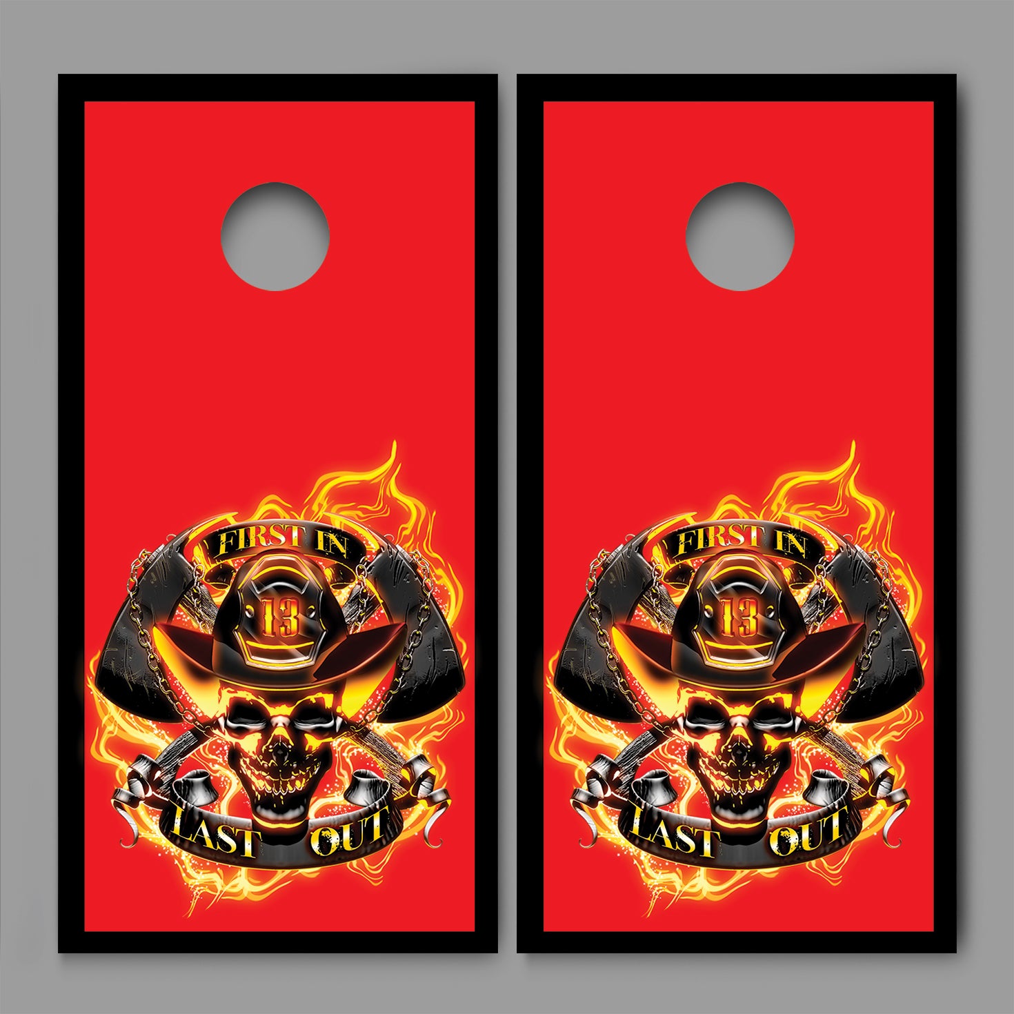 Firefighter First In Last Out Design Cornhole Board Decal Wraps