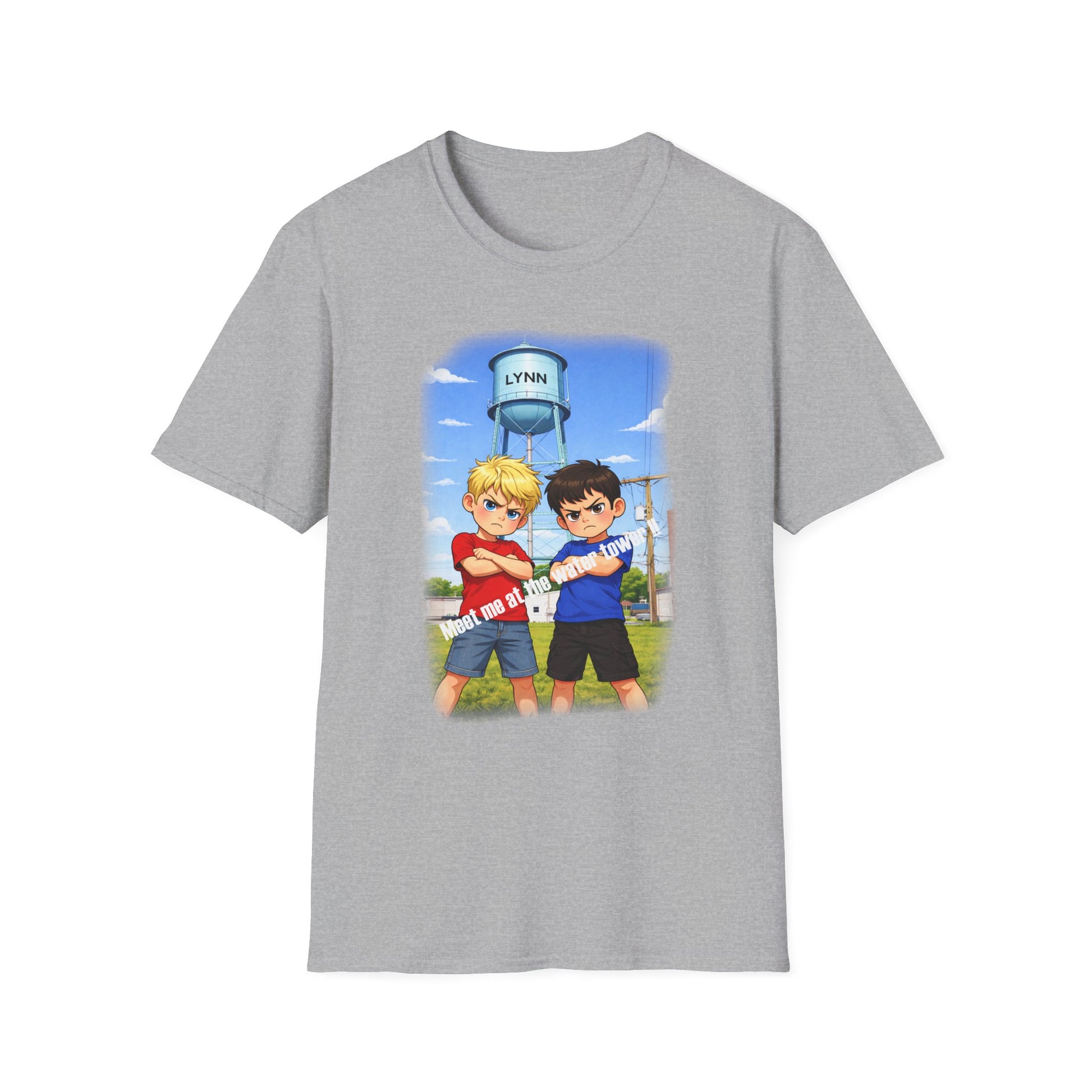 Two kids stand proud in front of a small-town water tower — sun on their faces, sneakers dusty from the ball field. This lightweight cotton tee keeps that summer energy alive: breathable ring-spun cotton that drapes easily, a clean crew neckline, and a soft tear-away label so nothing distracts from the day. Wear it to weekend town fairs, little-league games, or afternoons at the park to carry that backyard bravado wherever you go.