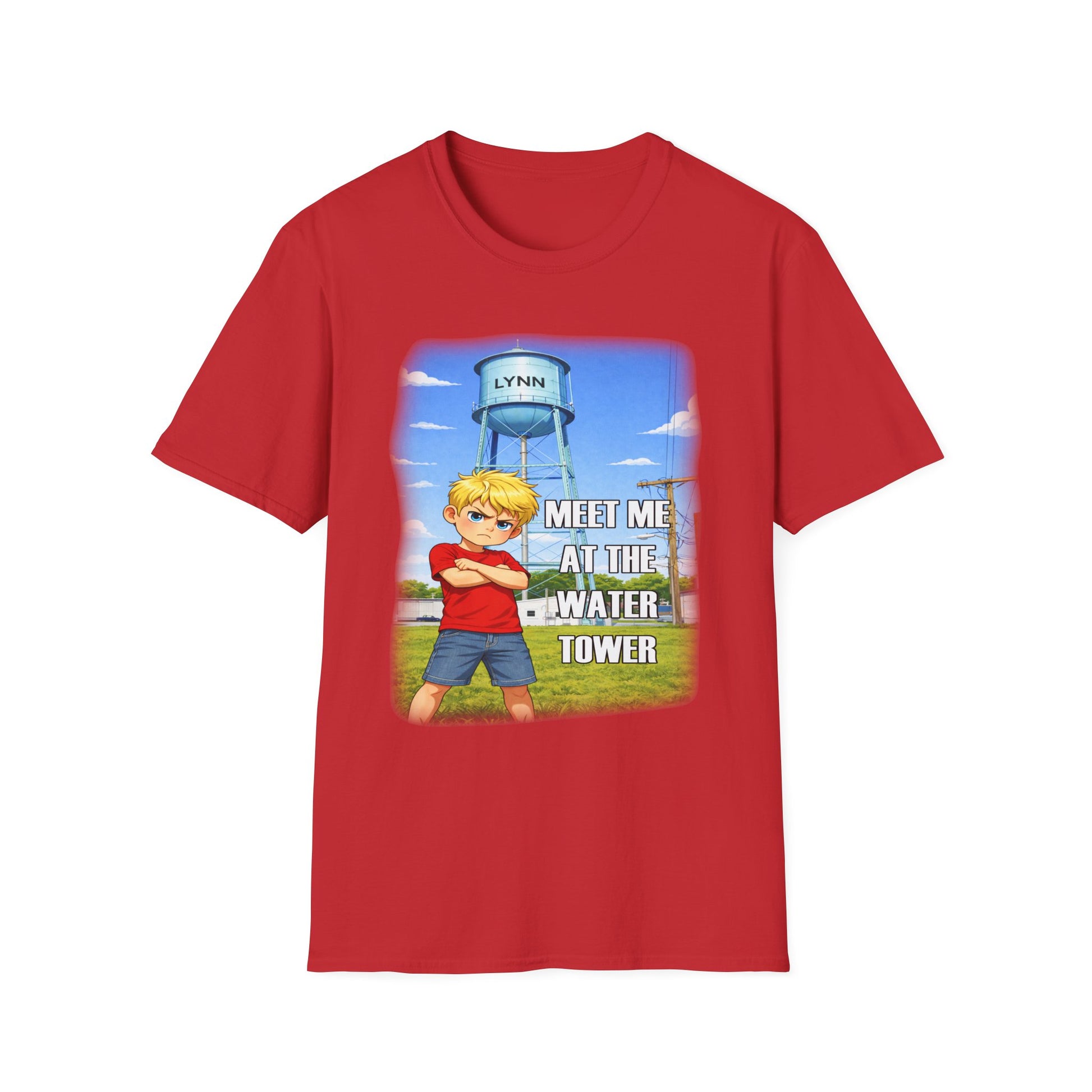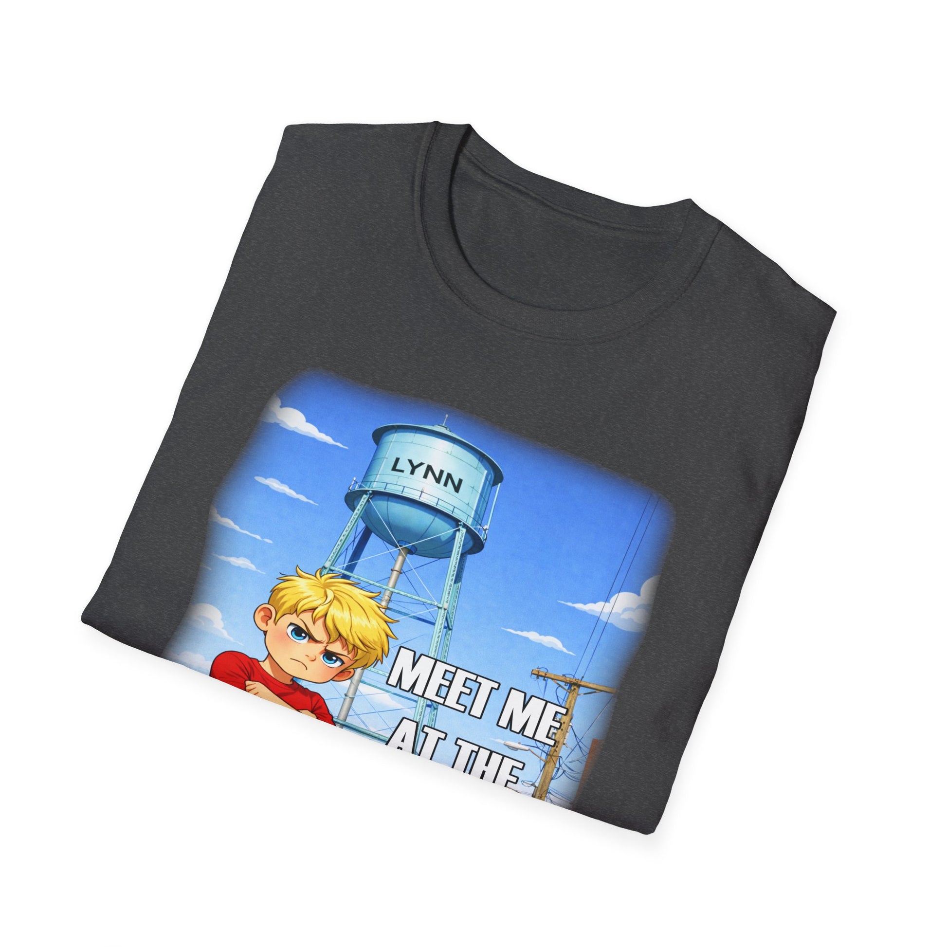 A lightweight, soft cotton tee that carries a playful, small-town vibe. The front art shows a determined kid in front of a painted water tower, with the phrase “Meet me at the water tower” — a sunny, nostalgic scene that feels like summer afternoons, neighborhood dares, and childhood adventures. Wear it when you want to bring that warm, slightly mischievous energy to casual weekends, local walks, or community events. The classic crew neck and clean fit keep the shirt approachable and easy to layer under a jacket or over a long sleeve. Colors and fabric choices keep the print crisp and comfortable all day.