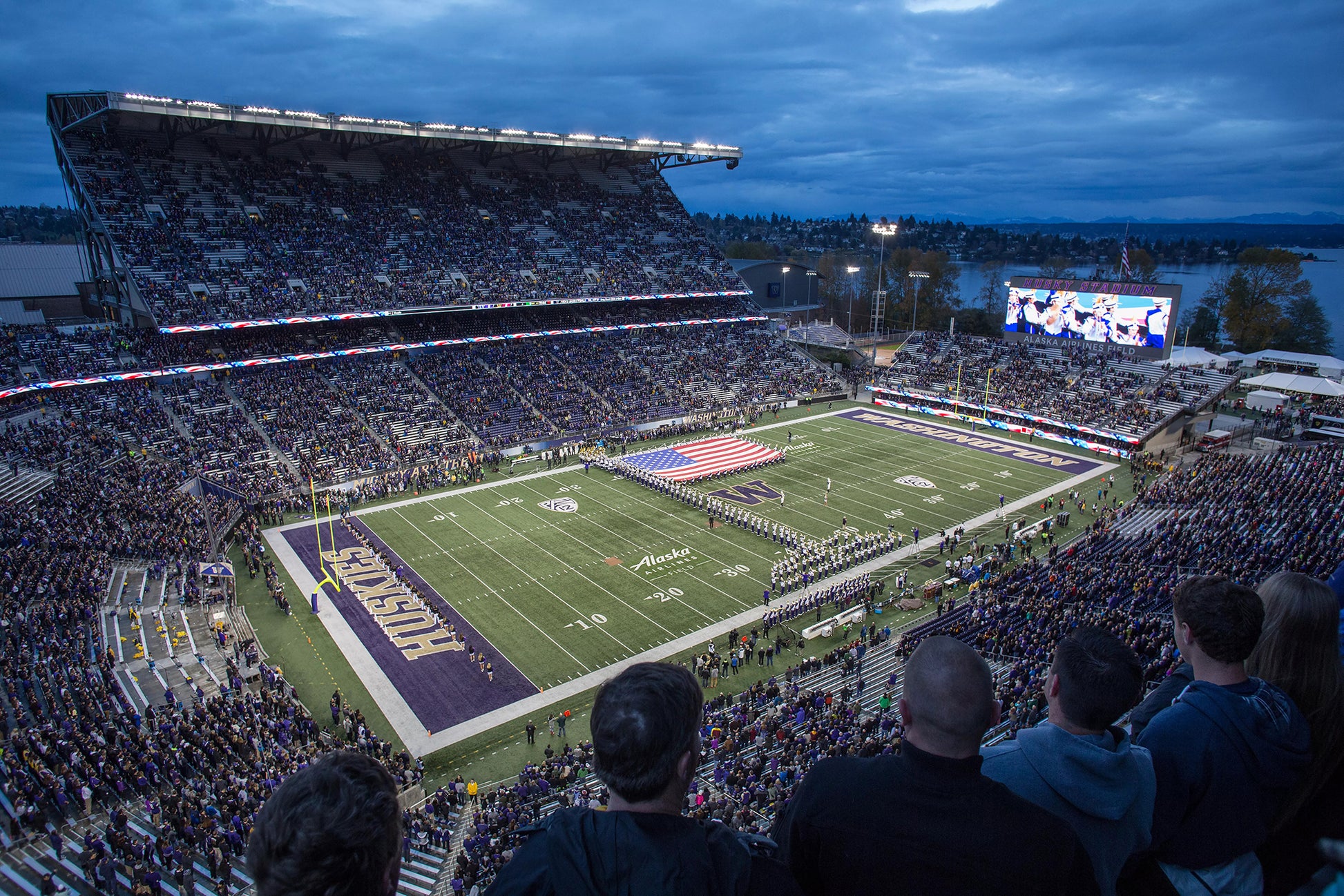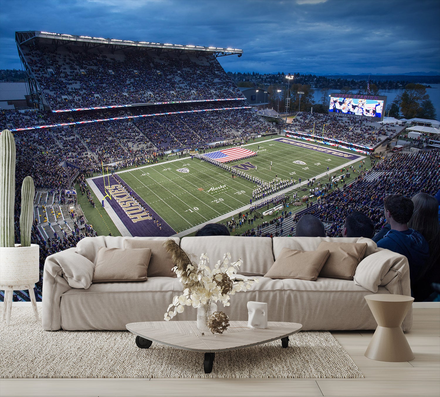 Washington Huskys Stadium Night Game American Flag Wall Mural